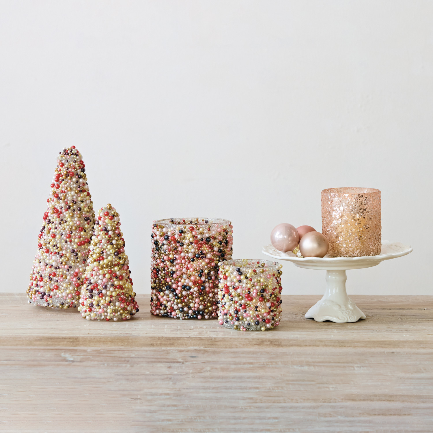 Catalog Name: 4-1/4" Round x 8"H Beaded Glass Tree, Multi Color (Each One Will Vary)