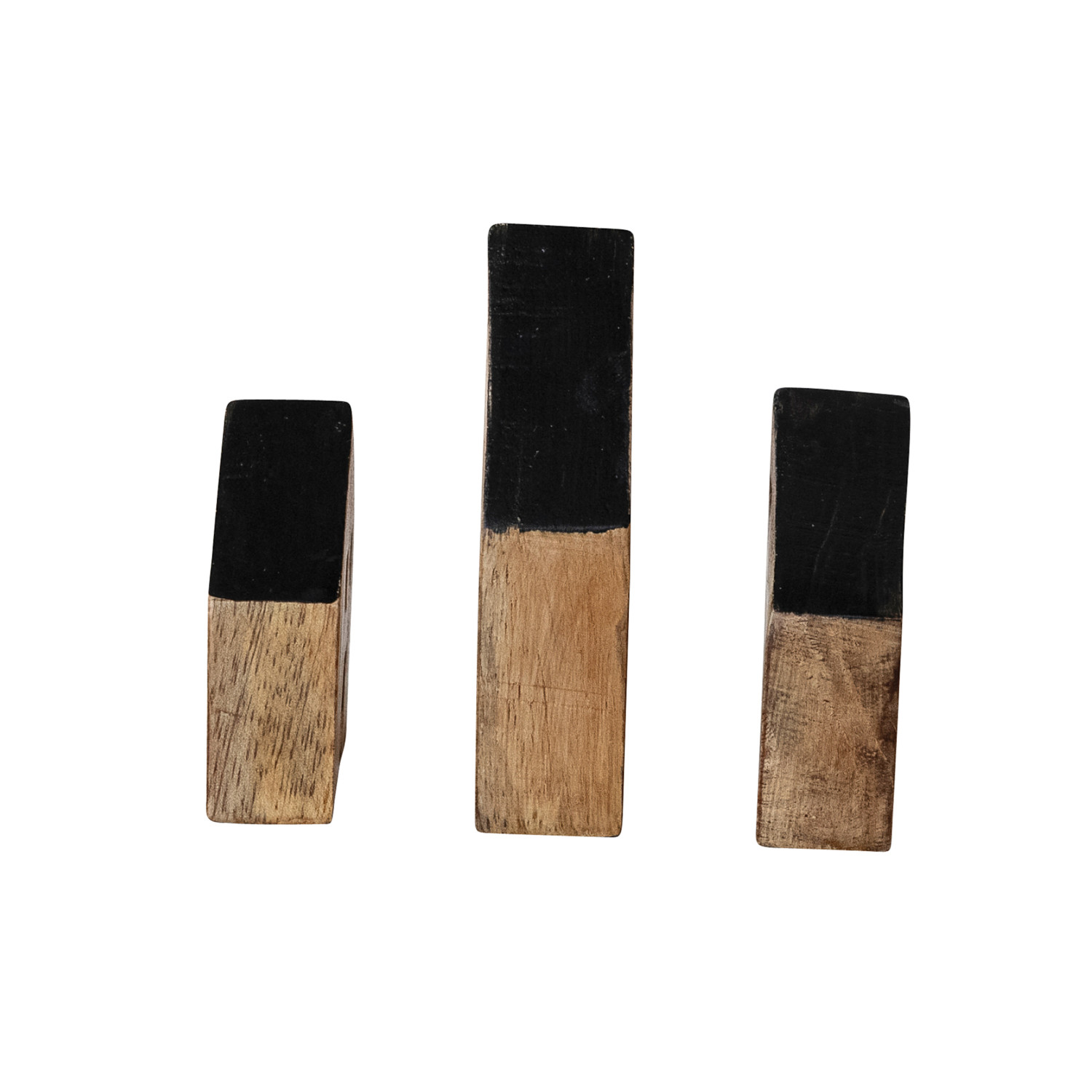 Catalog Name: 3"H & 2"H Mango Wood Houses w/ Black Edges, Natural, Set of 3