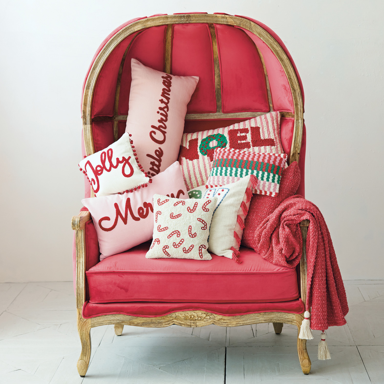 Catalog Name: 24"L x 16"H Woven Cotton Striped Lumbar Pillow w/ Tufted Wreath & "Noel", Multi Color