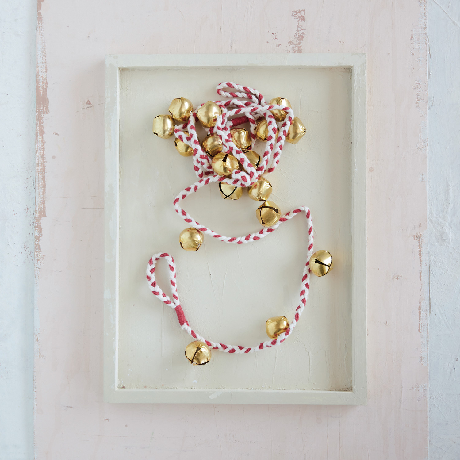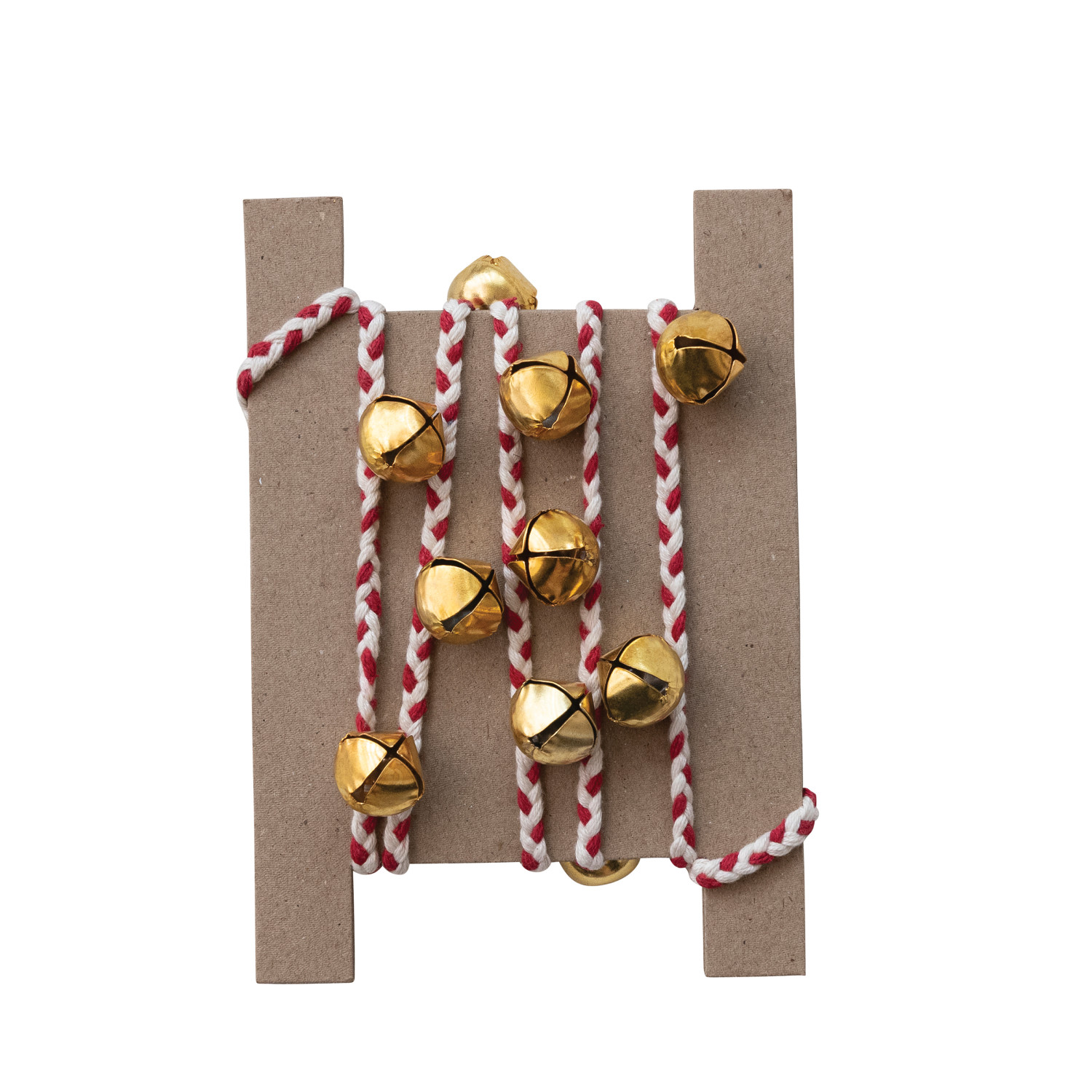 Metal Jingle Bell Garland with Red & White Braided Cord, Gold Finish