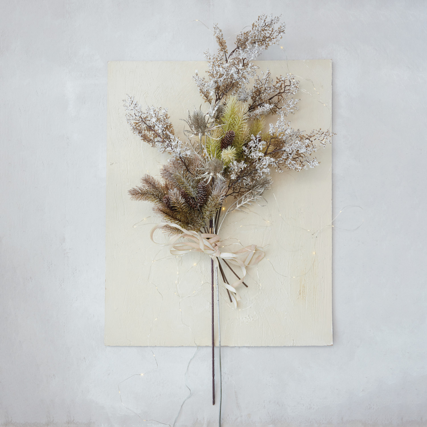 Faux Pine Bough Bundle with Pinecones, Sugar & Jute Tie, 2 Colors