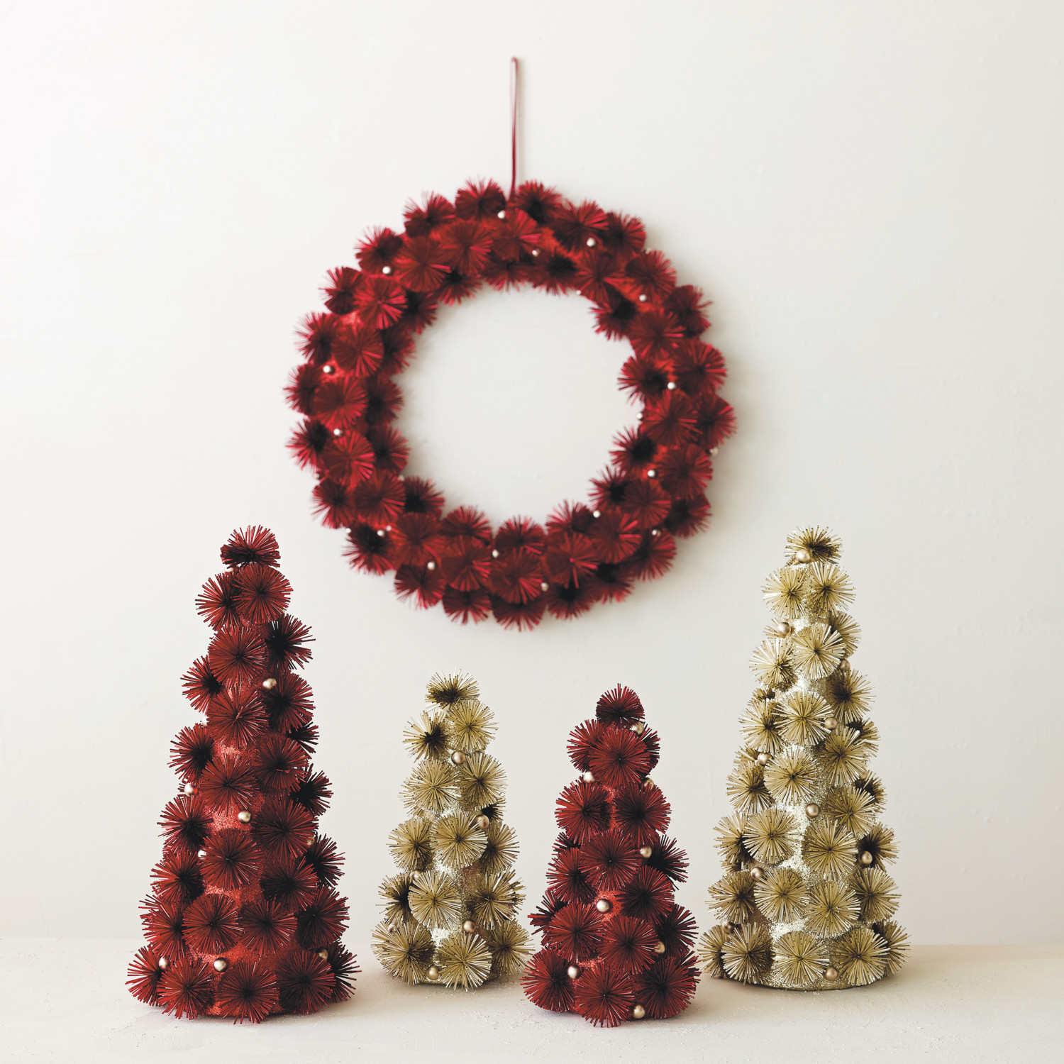 Catalog Name: 7-1/2" Round x 13"H Plastic Tinsel Ball Tree w/ Glitter & Silver Color Beads, Antique Silver Finish
