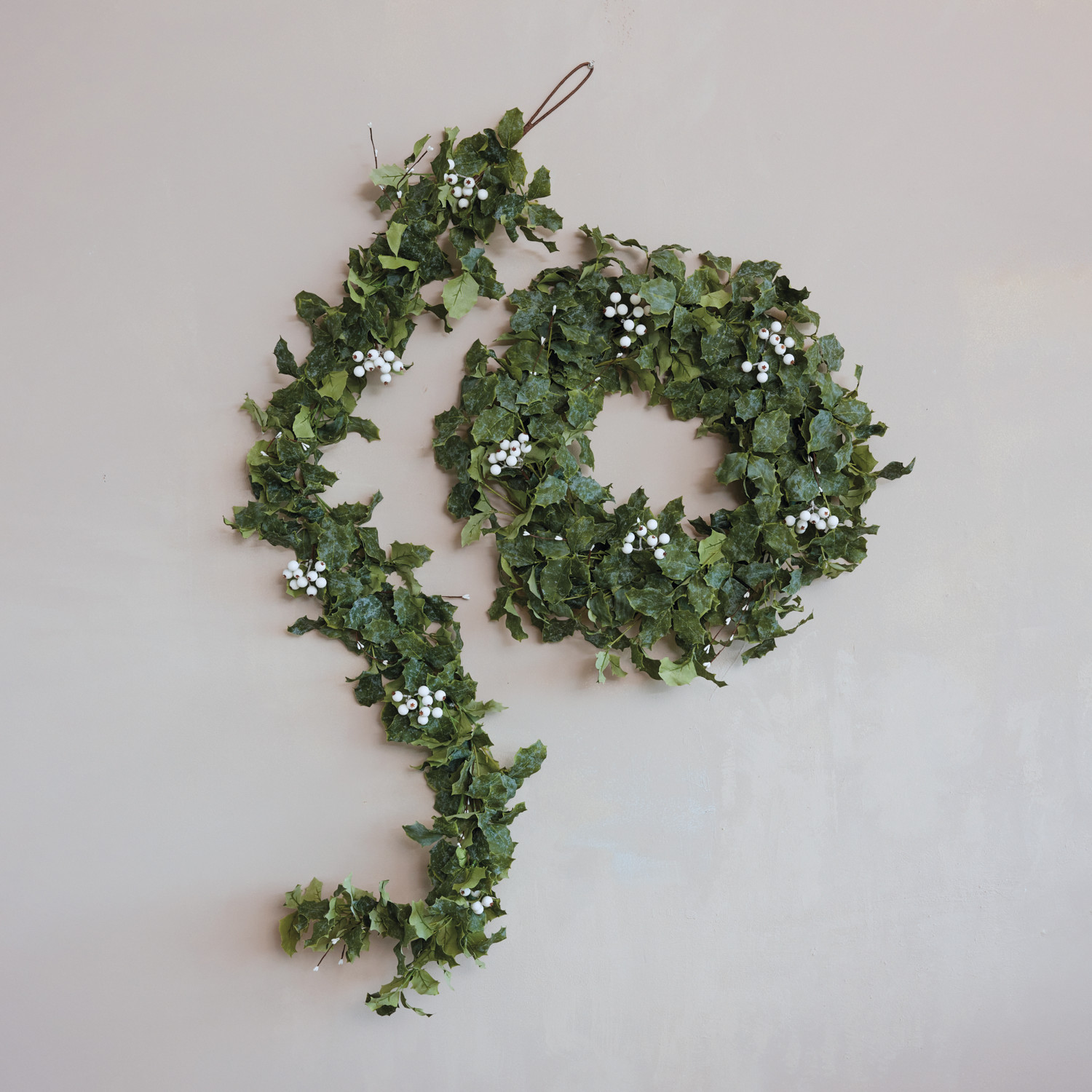 Faux Holly Garland with White Berries