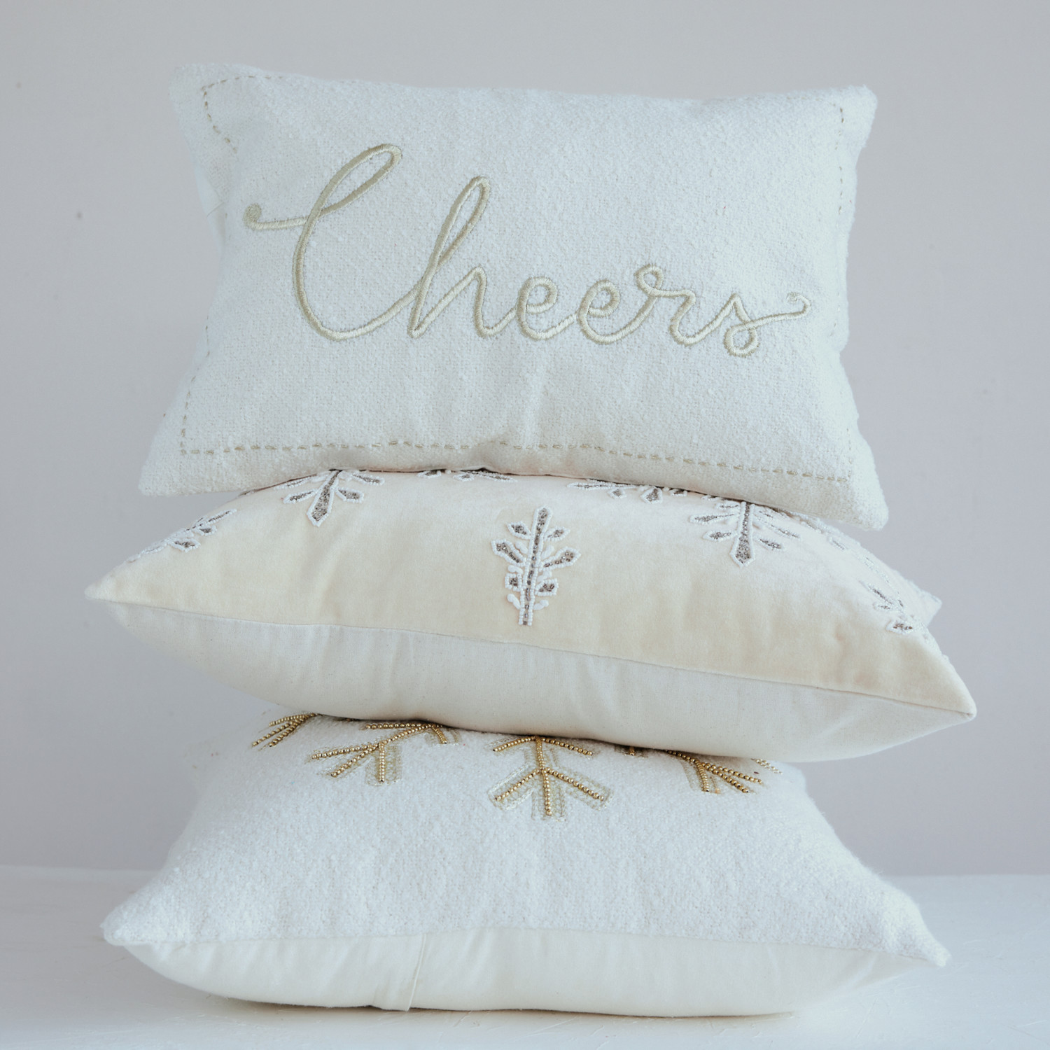 Cotton Velvet Lumbar Pillow with Snowflakes, Embroidery, Beads & Cotton Back