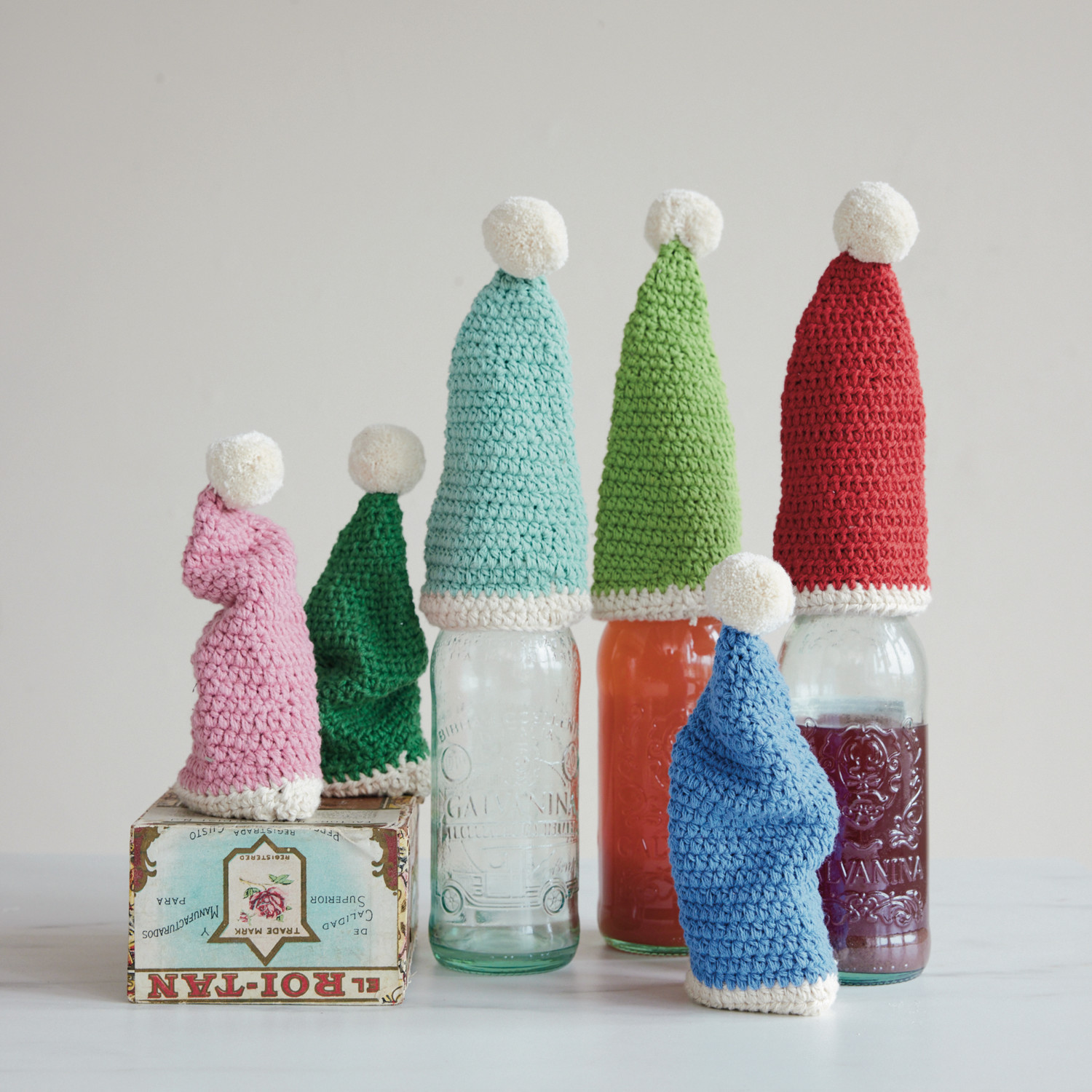 Cotton Crocheted Hat Bottle Topper, 6 Colors