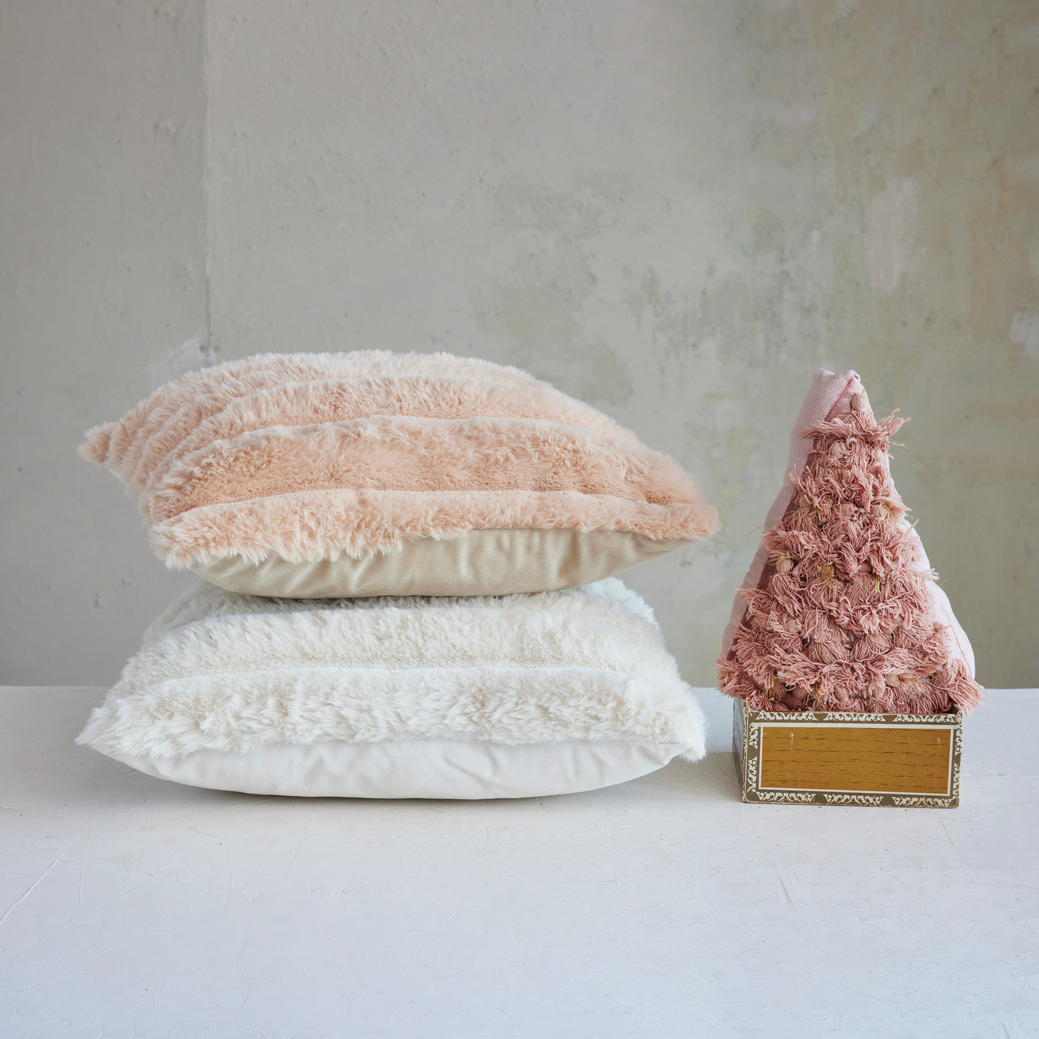Catalog Name: 18" Square Faux Fur Ribbed Pillow w/ Velvet Back, Blush Color