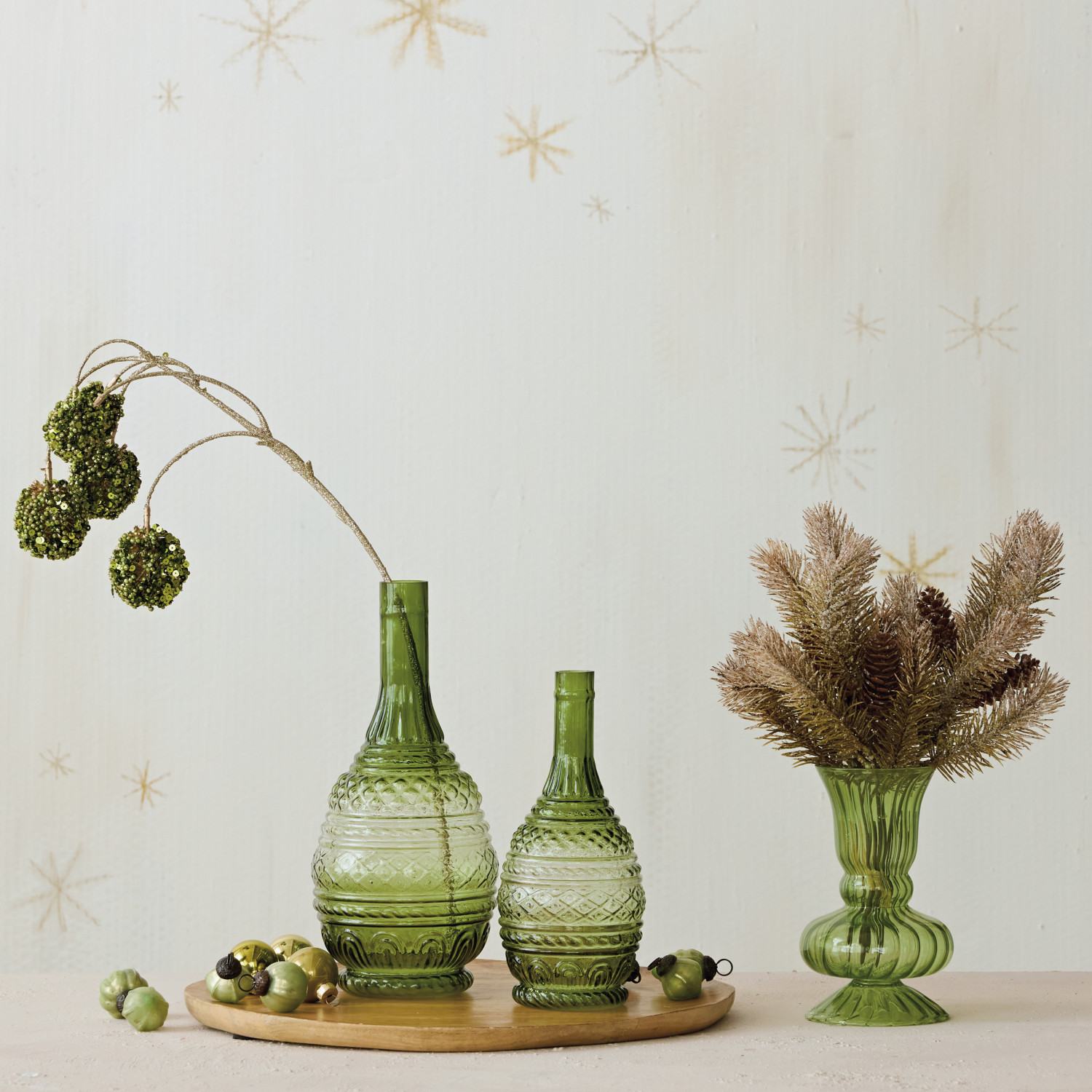 Hand-Blown Fluted Glass Vase, Green