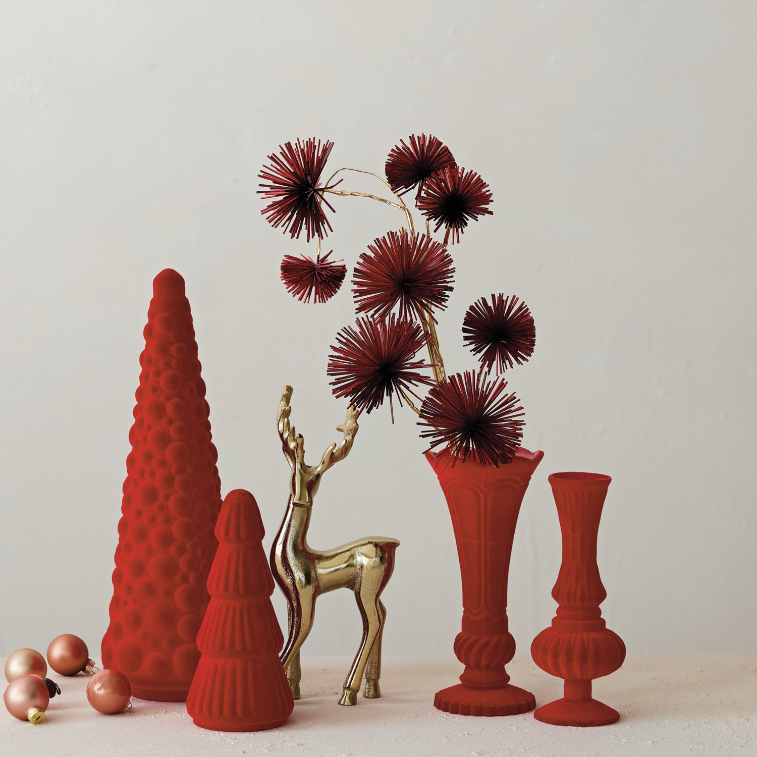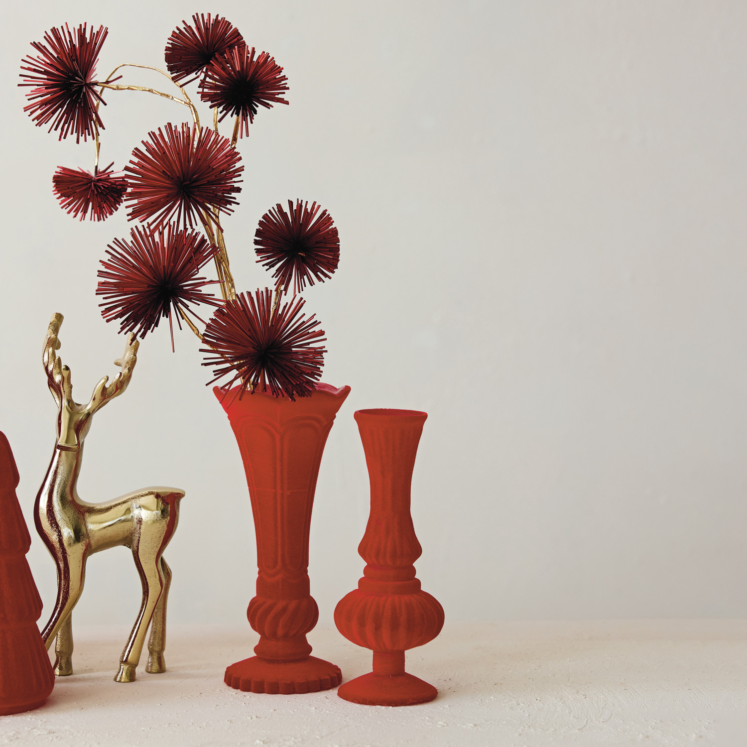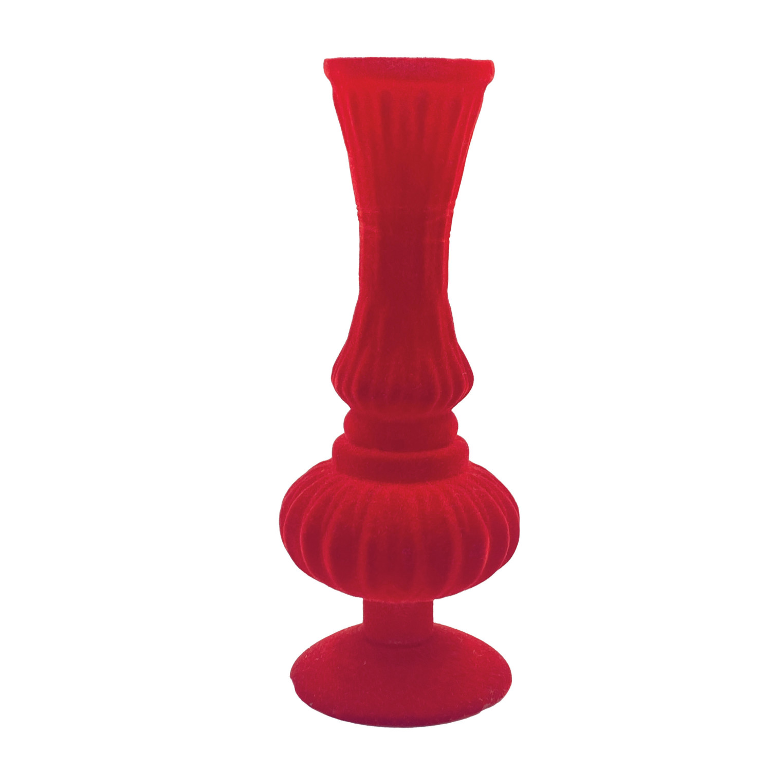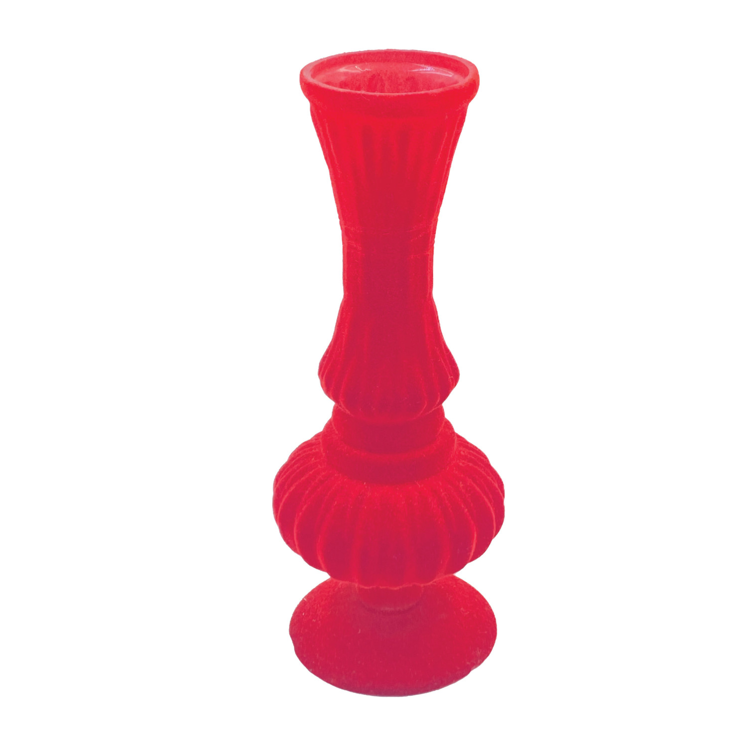 Embossed Flocked Glass Footed Vase, Red