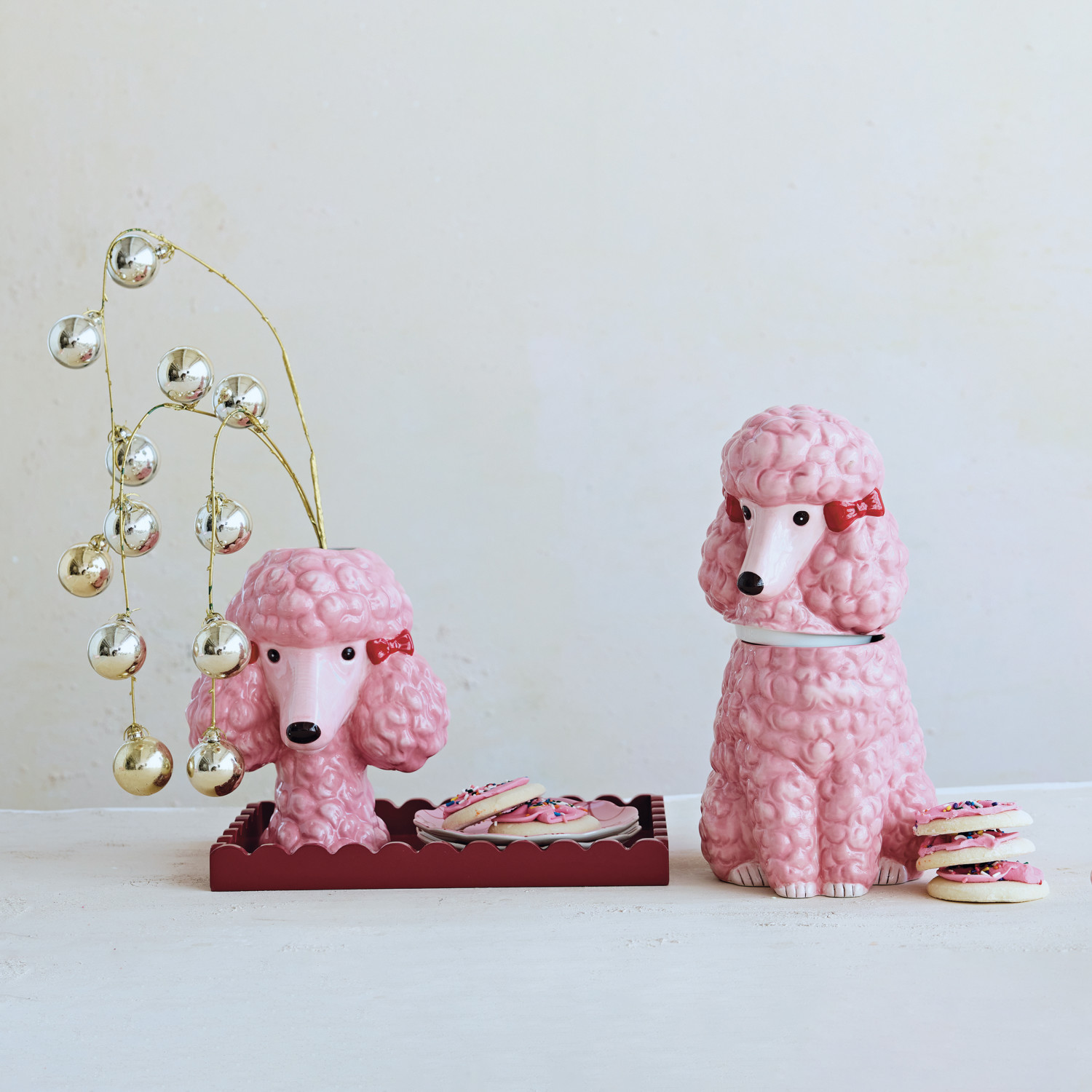 Ceramic Poodle Head Shaped Vase with Bows, Pink, Red & Black