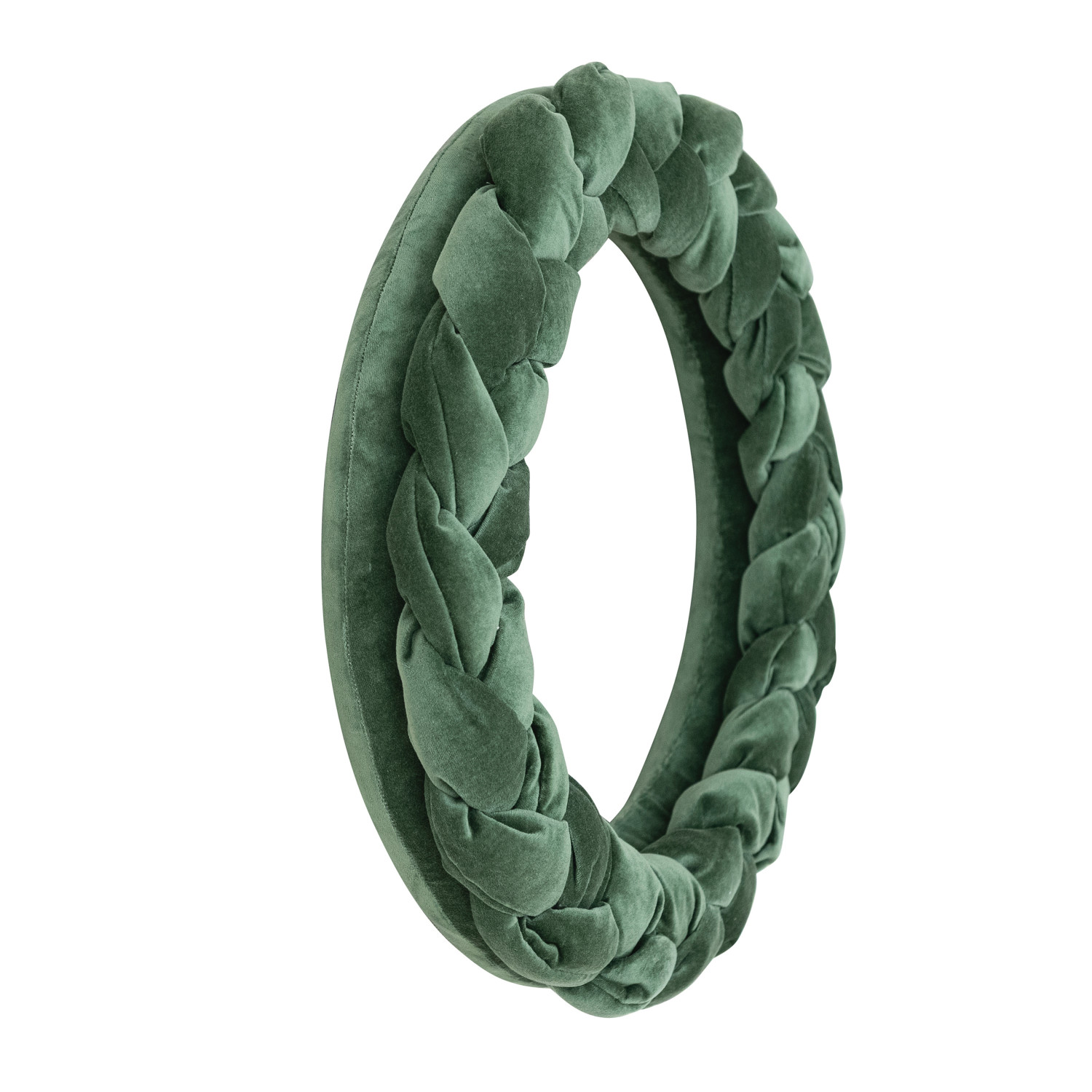 18" Round Cotton Velvet Braided Wreath, Green