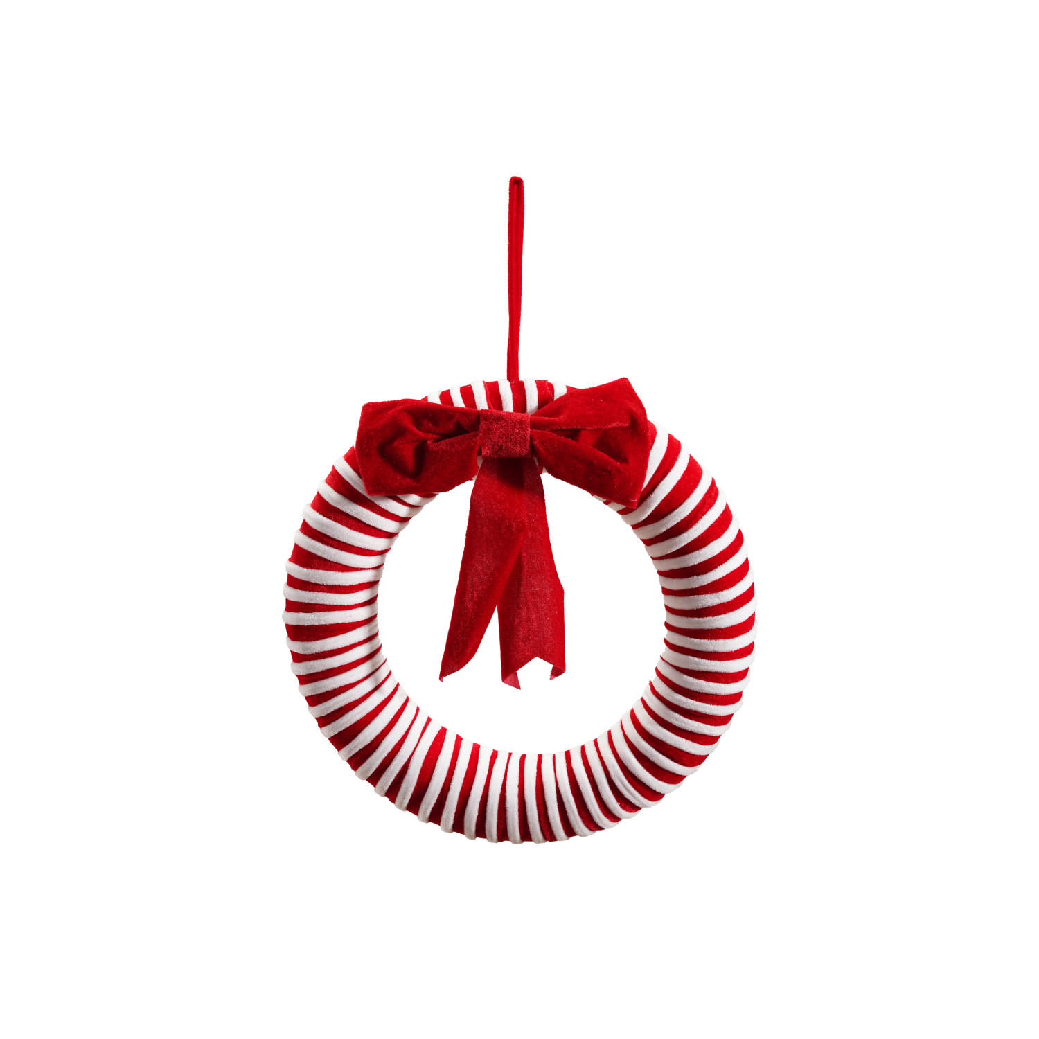 Catalog Name: 15-3/4" Round Fabric & Foam Striped Wreath w/ Bow, Red & White