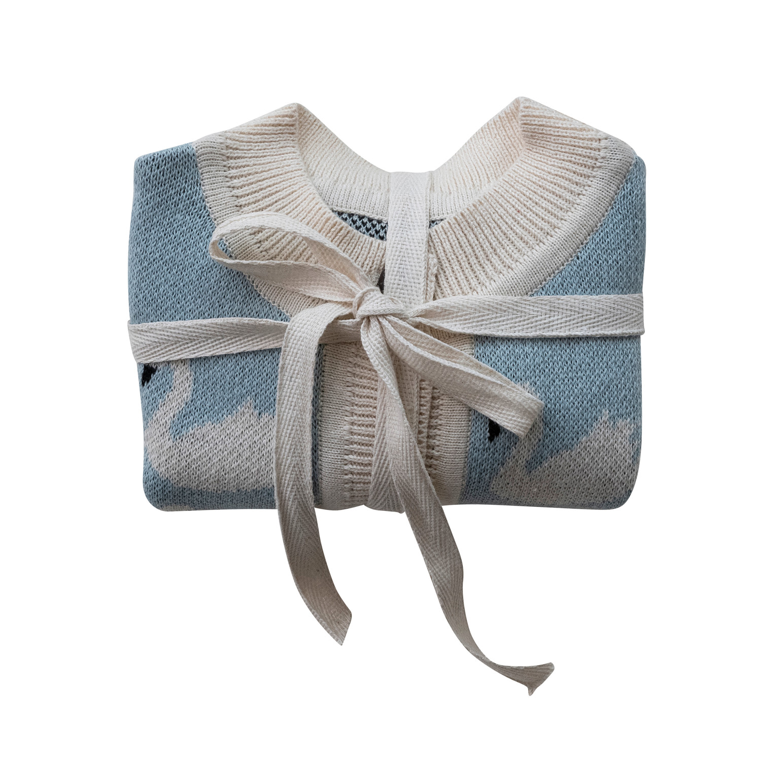 Catalog Name: Cotton Knit Baby Cardigan Sweater w/ Wood Buttons & Swans, Multi Color, 3 Sizes, Each Tied w/ Twill Tape (0-3 Months, 3-6 Months, 6-9 Months)