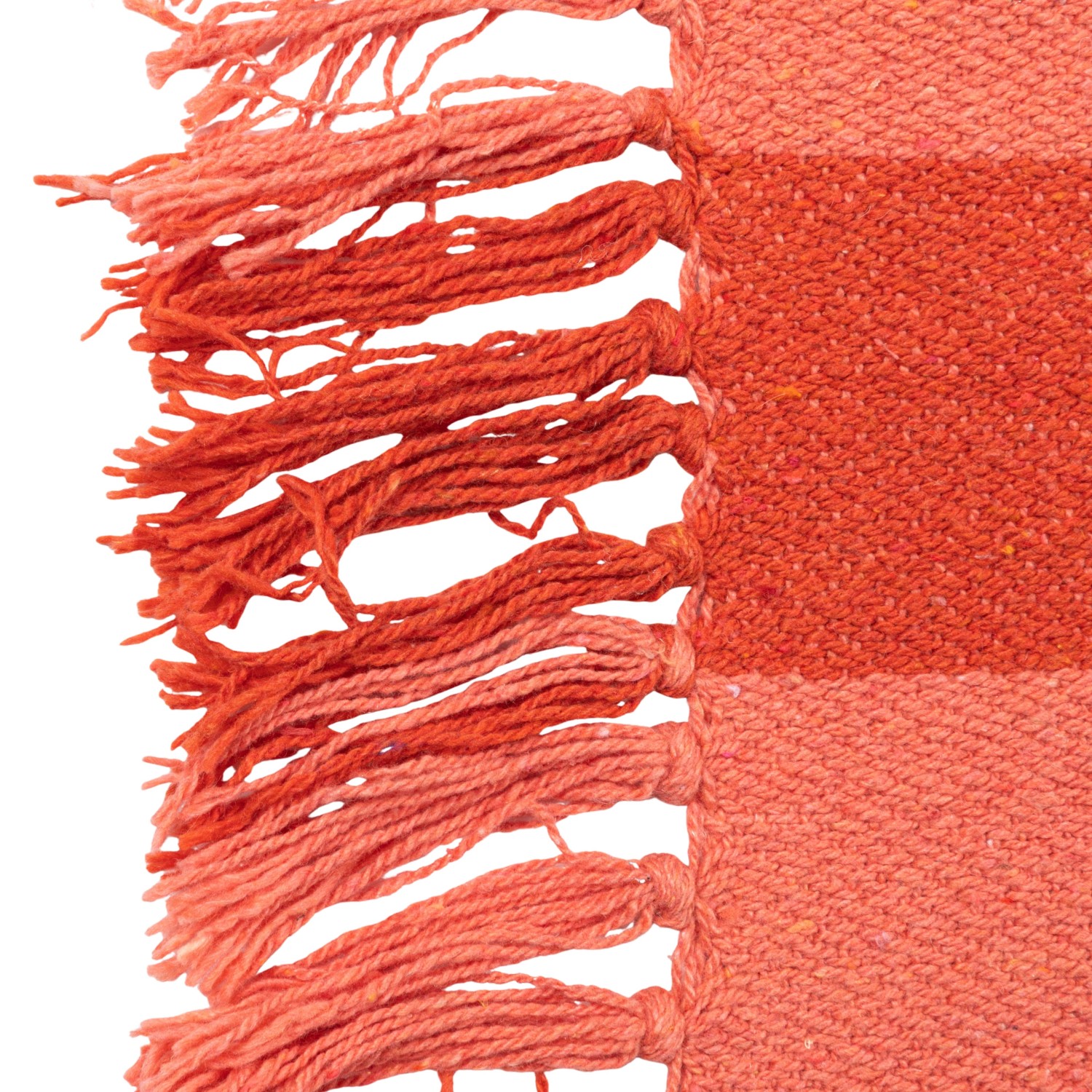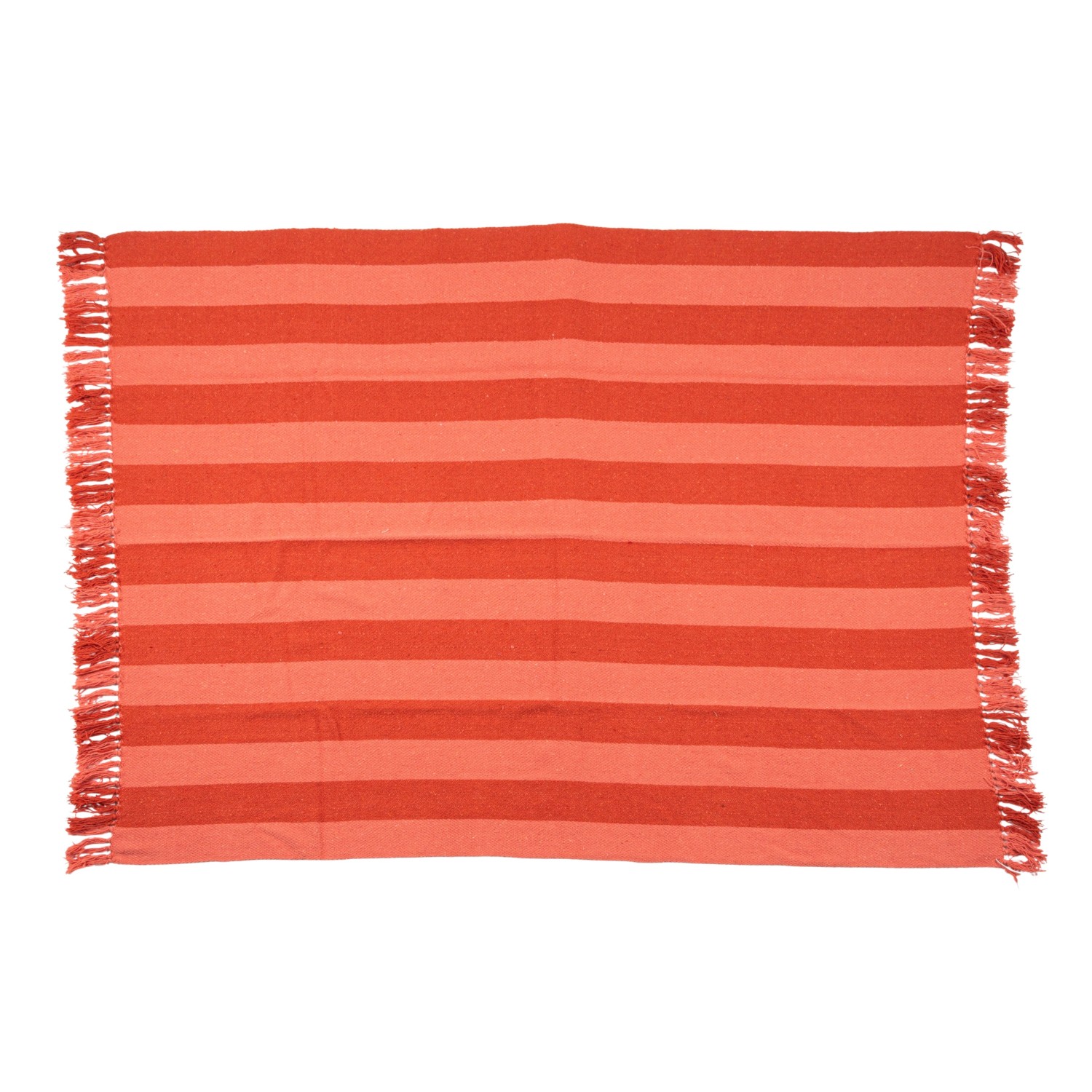 Catalog Name: 60"L x 50"W Woven Recycled Cotton Blend Throw w/ Stripes & Fringes, Red & Pink