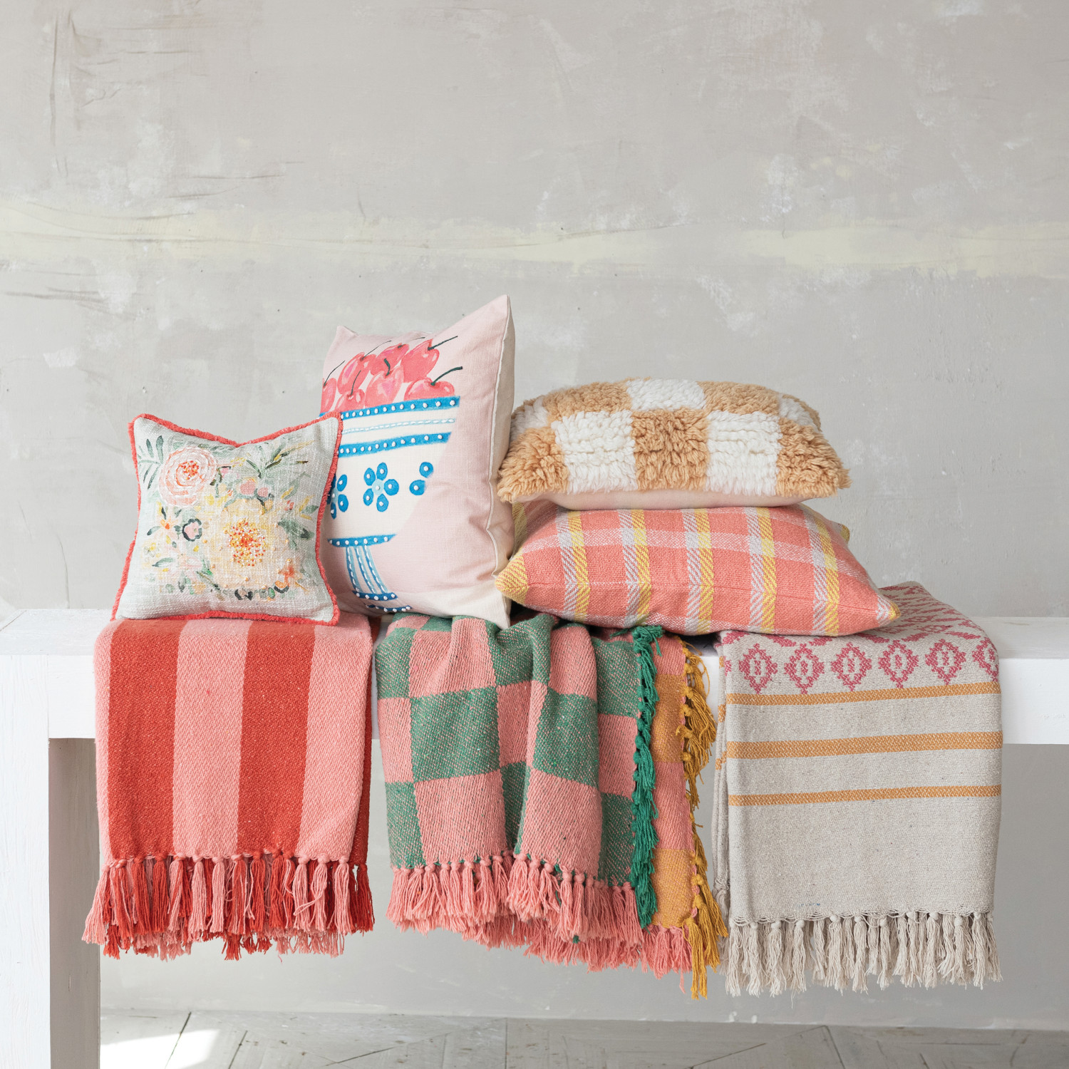 Woven Recycled Cotton Blend Throw with Stripes & Fringes