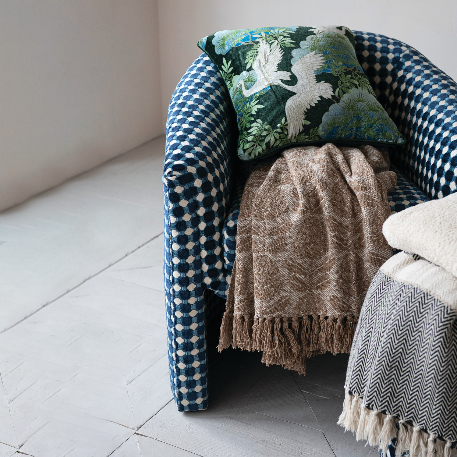 Catalog Name: 60"L x 50"W Woven Recycled Cotton Striped Throw w/ Fringe, Beige, Grey & Cream Color
