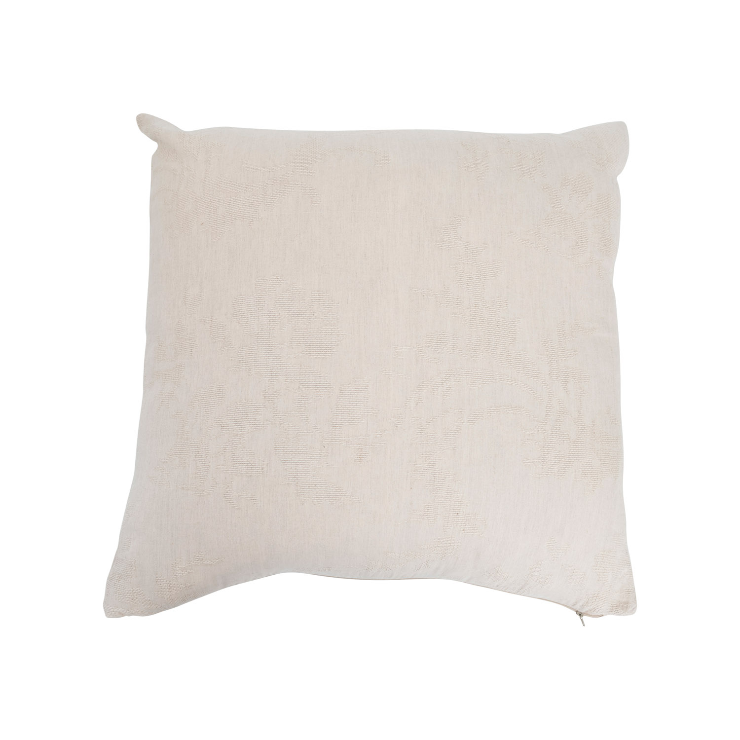 This elegant throw pillow features an intricately woven cotton jacquard construction. Square cream woven cotton jacquard throw pillow; Cream cotton encasement on back. Express your constantly evolving style with the simple addition of this eye-catching pillow. Removable cotton throw pillow cover and insert; Hidden in seam zipper closure; Machine wash cold, gentle cycle, do not bleach, warm iron if needed.