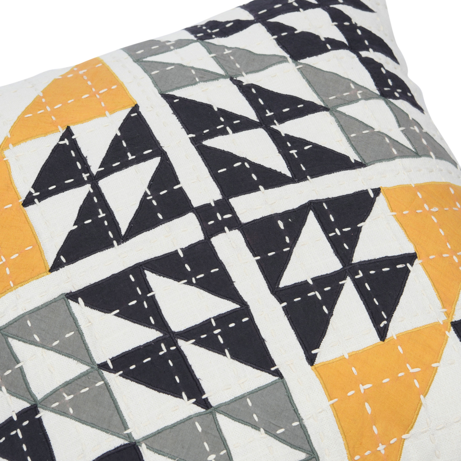 20" Cotton Patchwork Pillow w/ Kantha Stitch, Polyester Fill