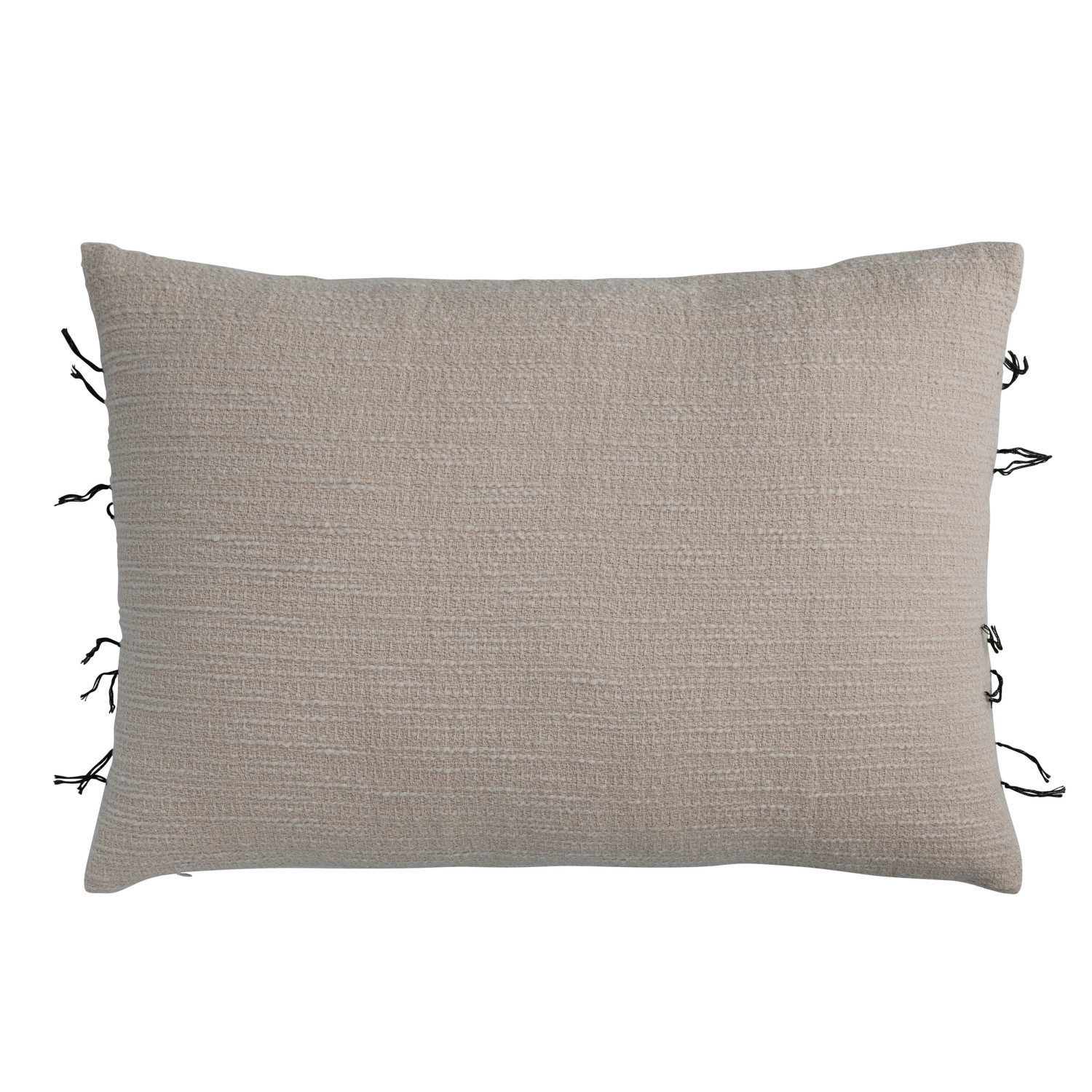 Catalog Name: 24"L x 16"H Cotton Lumbar Pillow w/ Hand-Embroidered Kantha Stitch, Natural & Black