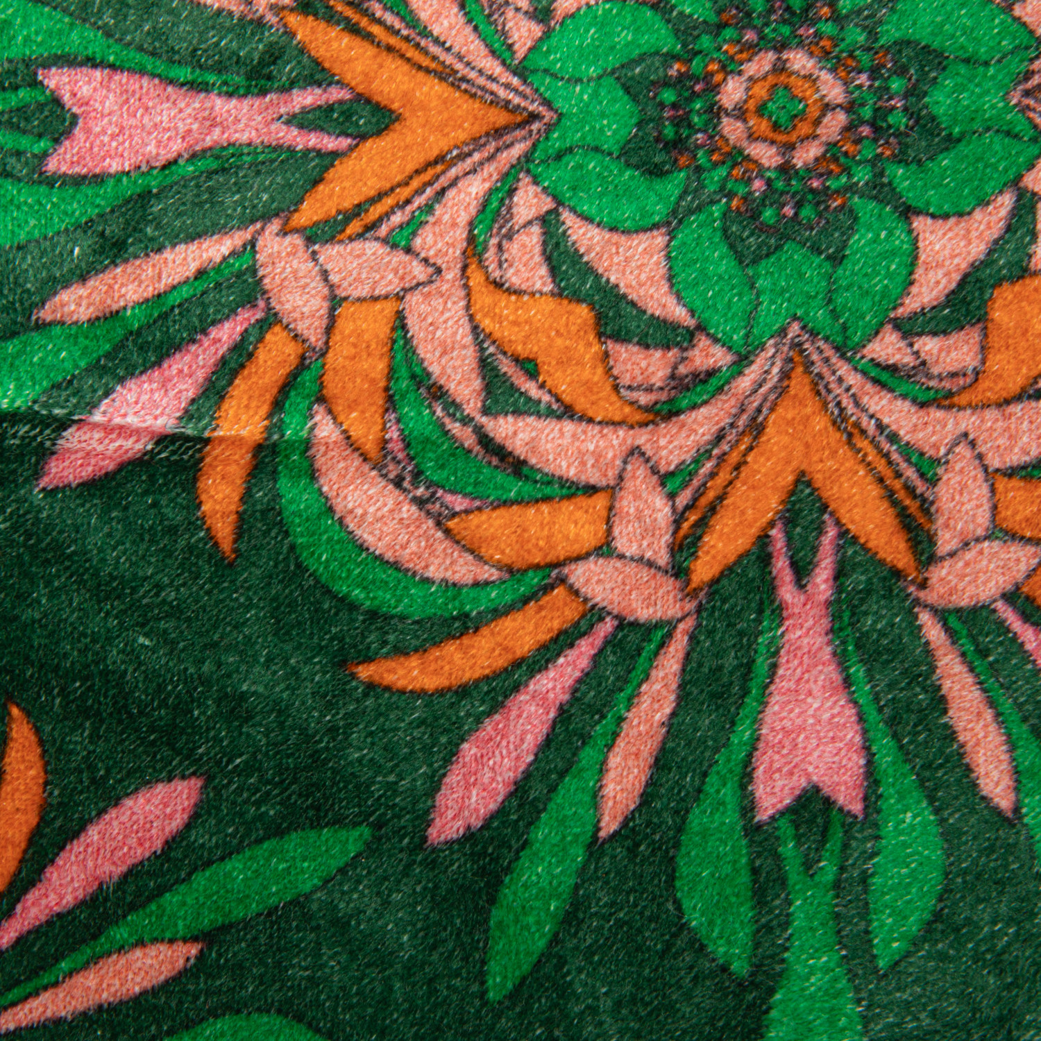 Catalog Name: 20" Square Velvet Printed Pillow w/ Floral Pattern & Eyelash Fringe, Green, Pink & Orange Color