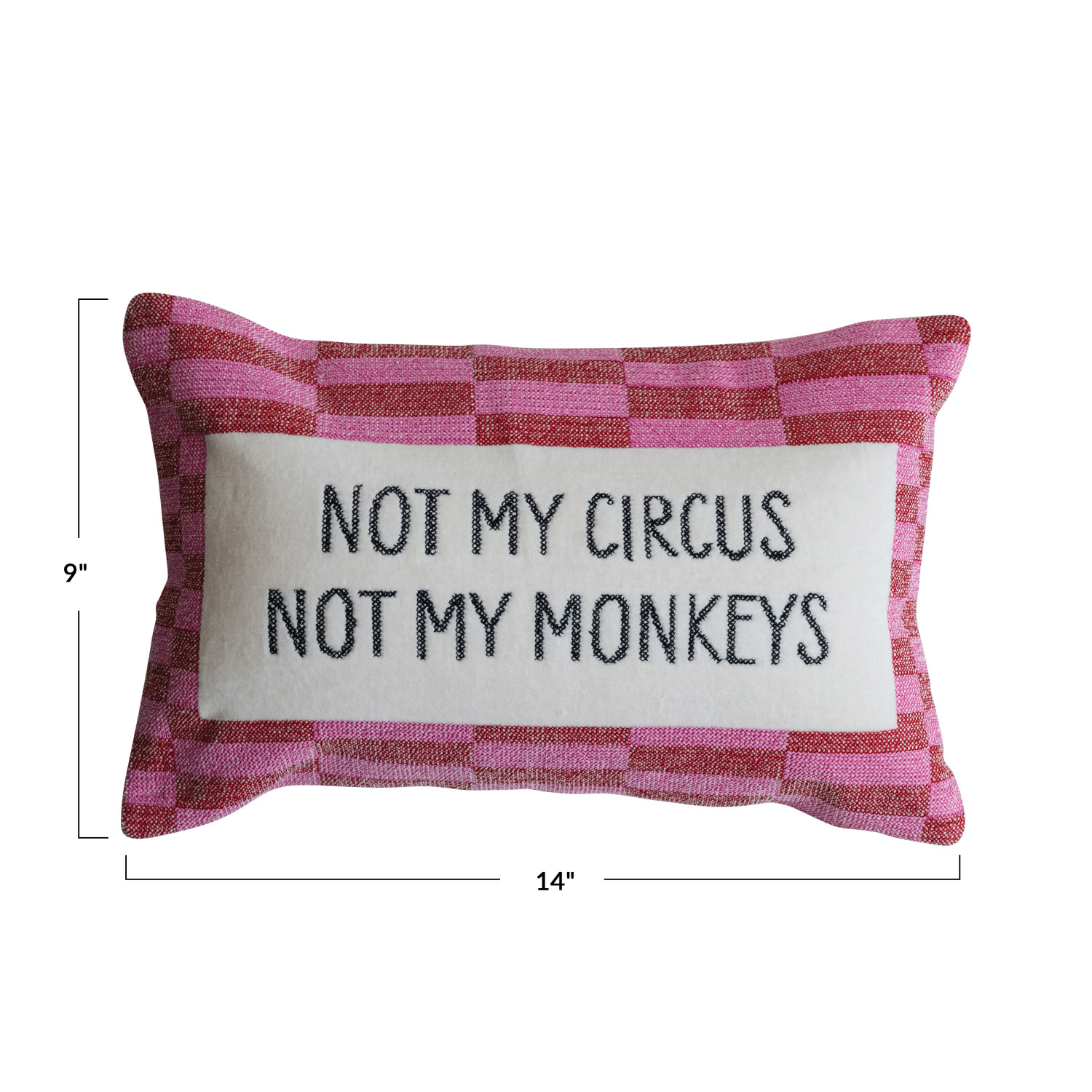 Catalog Name: 14"L x 9"H Cotton Velvet Embroidered Lumbar Pillow w/ Geometric Pattern "Not My Circus…", Multi Color