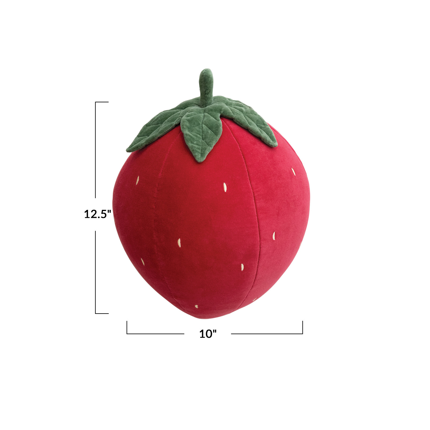 Cotton Velvet Strawberry Shaped Pillow w/ Embroidery, Red, Green & Yellow