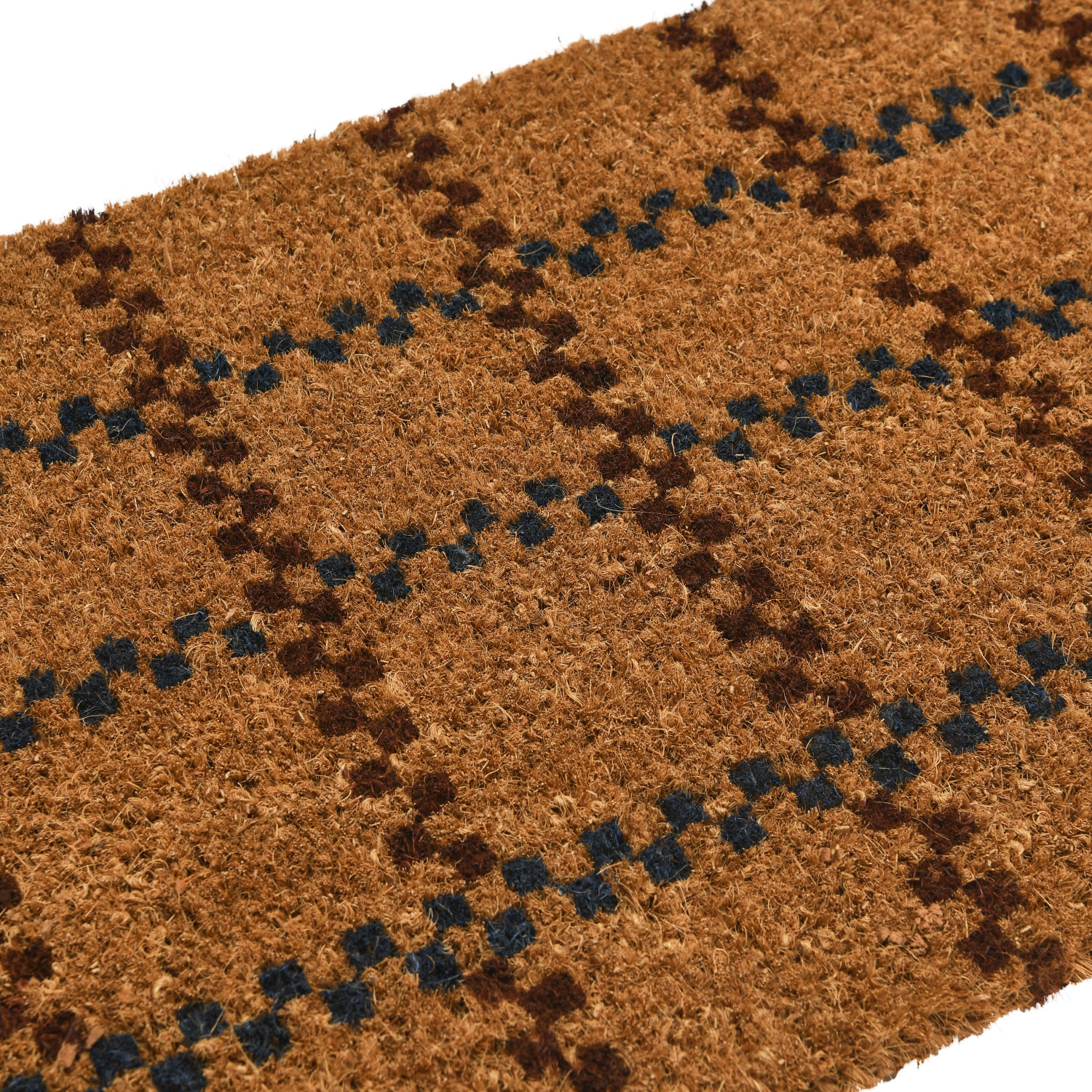 Catalog Name: 32"L x 16"W Natural Coir Doormat, Navy Color & Brown Plaid