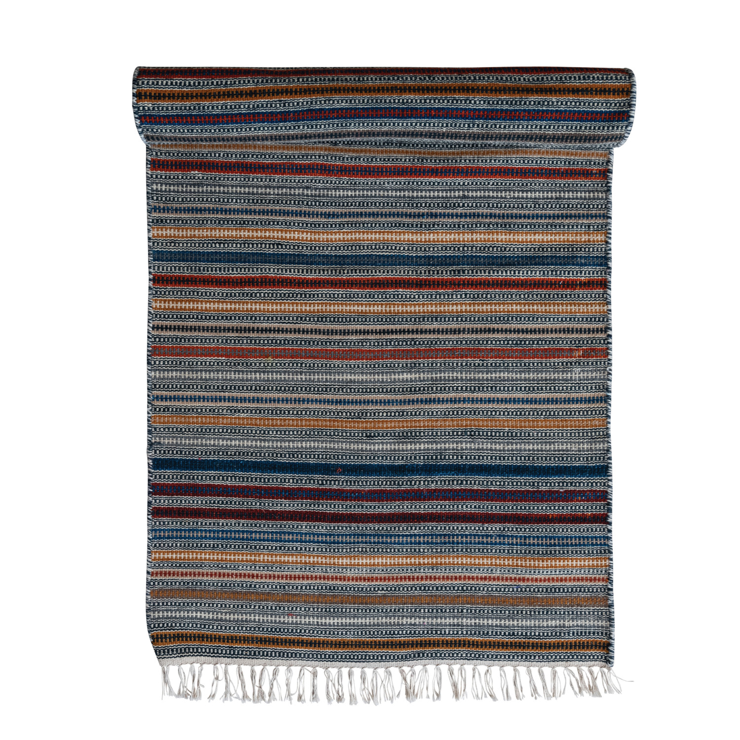 Catalog Name: 2-1/2' x 8' Woven Wool Striped Floor Runner w/ Fringe, Multi Color