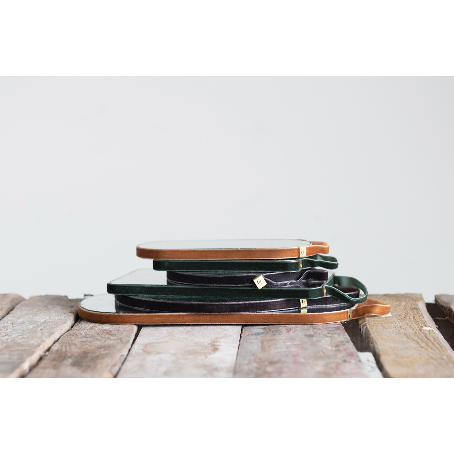 Velvet Edged Wall Mirrors with Hangers, Set of 6