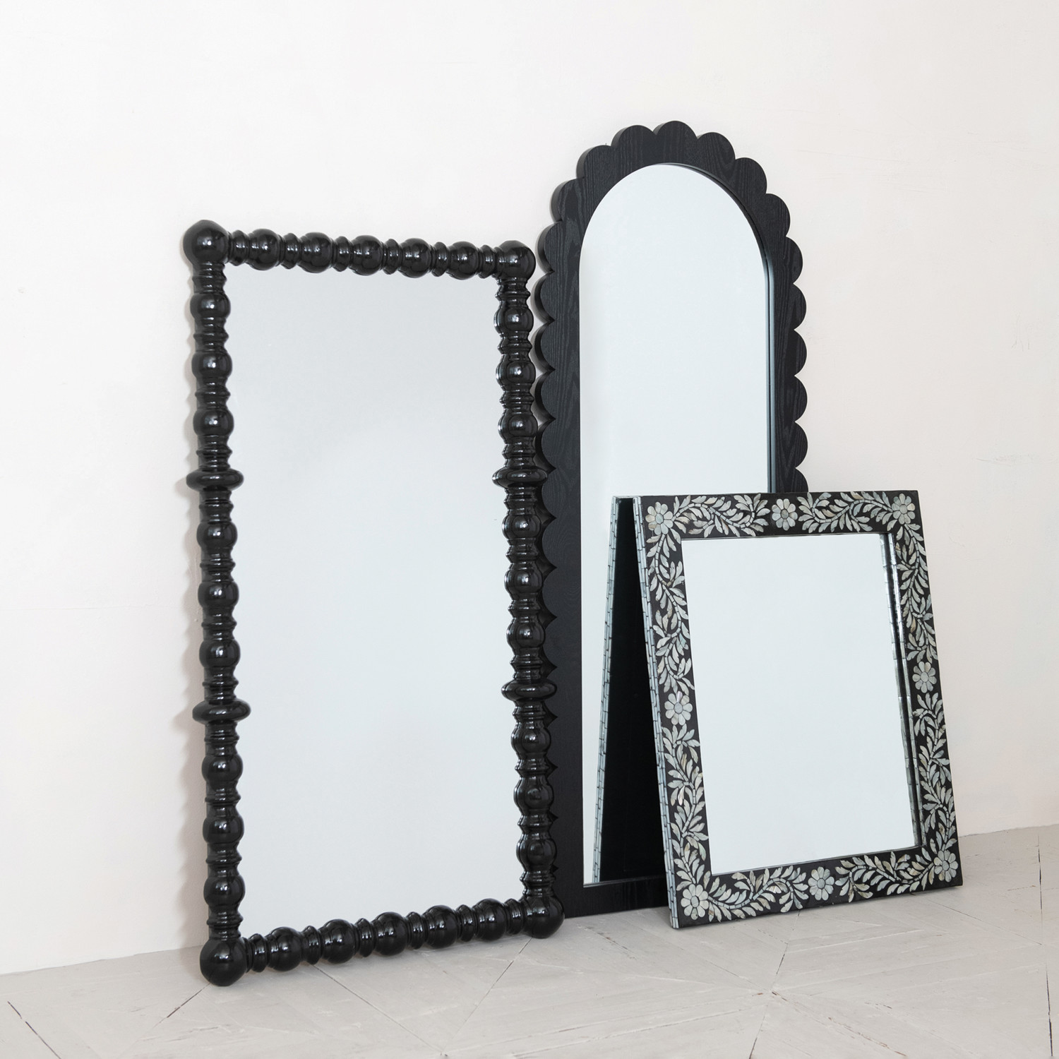 Catalog Name: 23-1/2"W x 57-1/2"H MDF Framed Arched Scalloped Wall Mirror, Black, Truck Ship