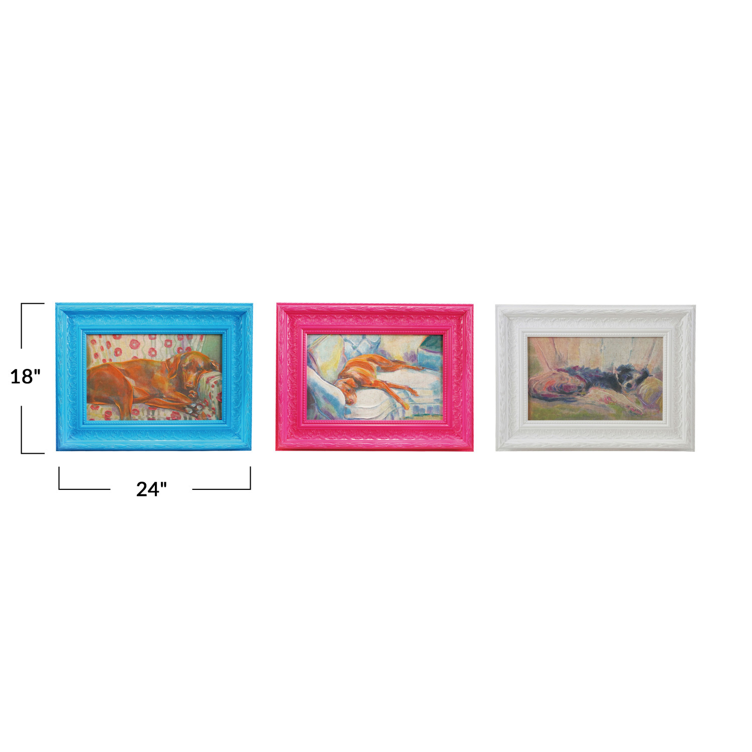 Moulded Composite Framed Wall Décor w/ Sleeping Dog Image, 3 Styles