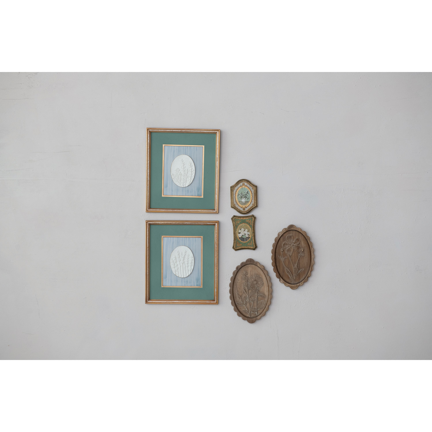 Catalog Name: Approximately 4-1/2"W x 6-1/2"H MDF Wall Décor w/ Flowers in Vase, Antique Gold Finish & Multi Color, 2 Styles ©