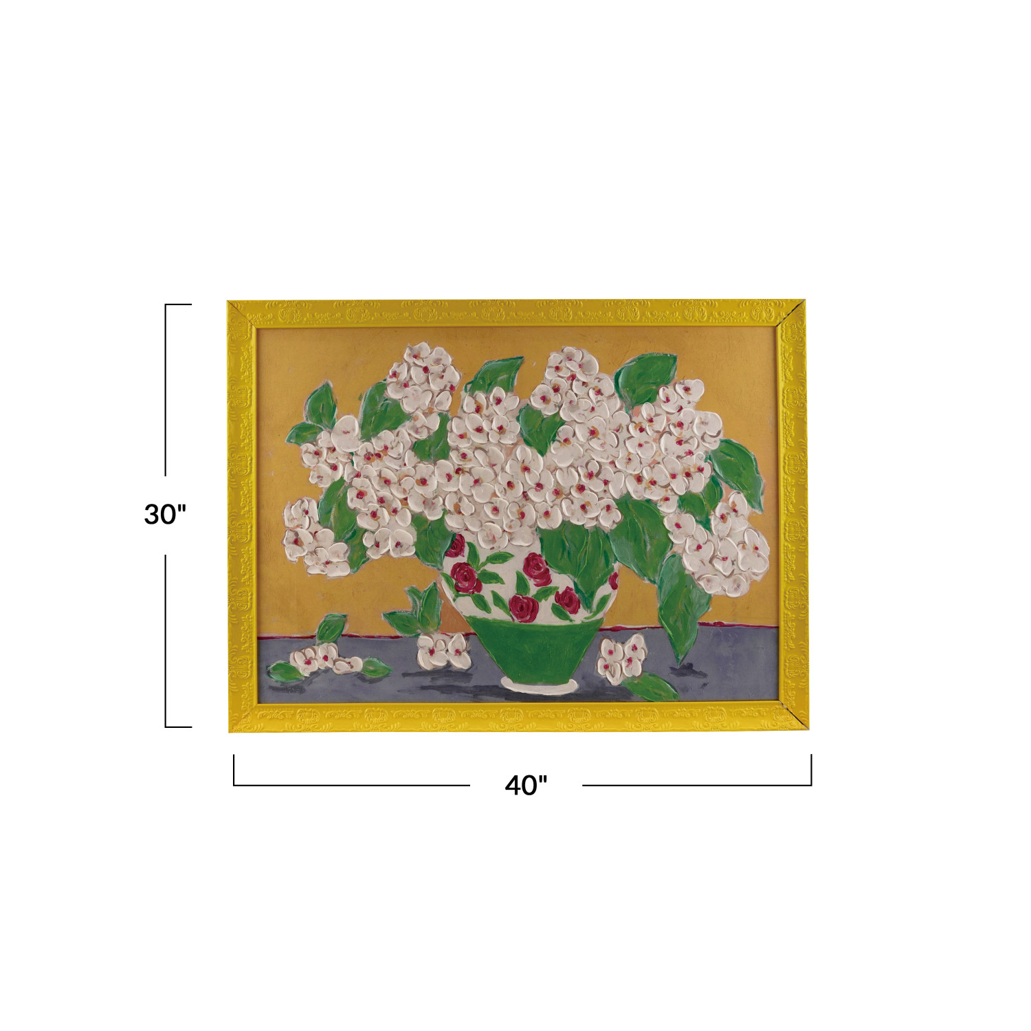 Moulded Composite Framed Canvas Wall Décor w/ Flowers in Vase ©