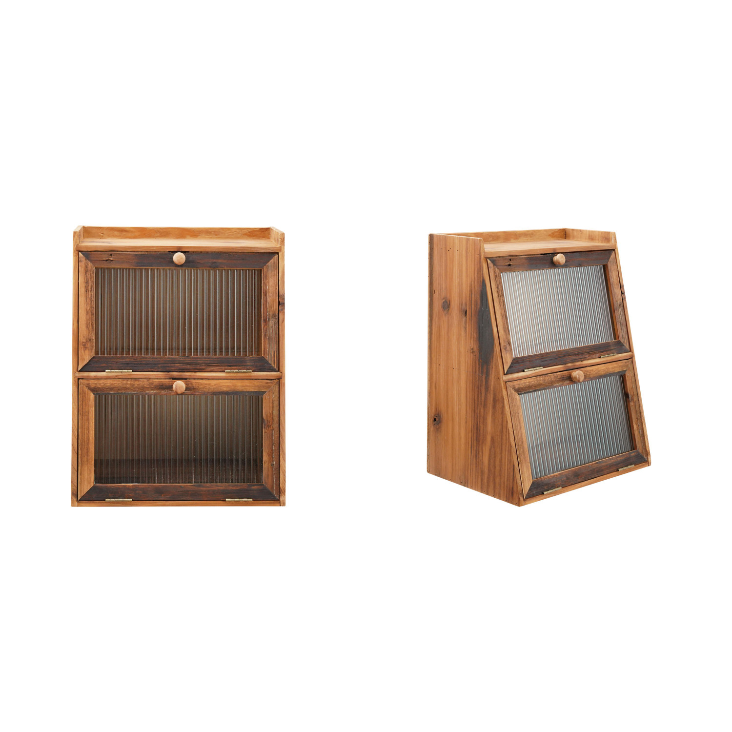 Catalog Name: 15-3/4"W x 11"D x 19-1/2"H Wood Wall Cabinet w/ 2 Fluted Glass Doors & 1 Shelf, Distressed Finish, Natural (Hangs or Sits)
